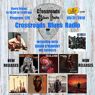First section with interview with Brian O'Mahony, guitar and voice of Mr. Shingles, where we talked about his debut album "Green In Blue". In the second section, our classic "New Releases", we have the new albums by Shari Puorto, Guilande, Danielle Nicole, Alejandro Escobedo with Don Antonio, Cedric Burnside, Ben Poole and Joe Bonamassa.